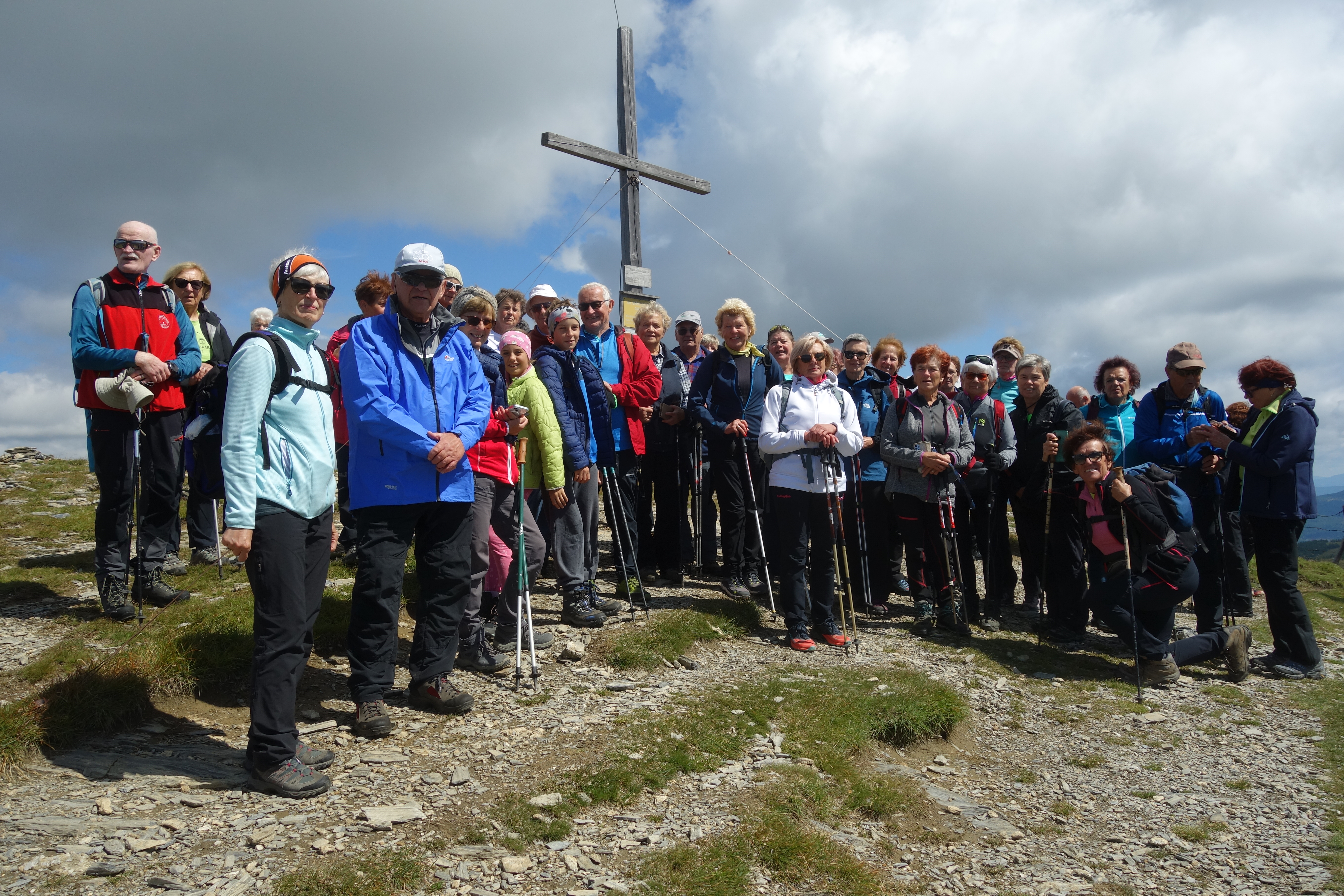 Ponedeljkovi pohodniki smo že težko dočakali izlet v Krške Alpe na Koroškem, saj smo ga odlagali zaradi slabe vremenske napovedi. Izlet nam je uspelo izvesti v sredo, 30. julija. Zbralo se nas je za poln velik avtobus, skupaj 56 pohodnikov. V izogib poletni vročini je vodnica Dragica izbrala pohod v gorovje Nockberge, kjer so poti po zahtevnosti lahke in primerne za ponedeljkovo skupino pohodnikov. Skozi znano smučarsko središče Bad Kleinkirchheim smo se pripeljali v letovišče Kaiserburg. Od tu smo se s kabinsko žičnico pripeljali na višino okrog 2000 m, kjer se je začel naš pohod. Vodnika Dragica in Franjo sta nas razdelila na dva dela. En del je odšel na nekoliko daljši pohod po gorskih pašnikih na goli travnati vrh, kjer smo se razgledali po okoliških vrhovih in kljub delno ovite v oblake v daljavi prepoznali naše vrhove Jalovec, Mangart in Triglav. V svetišču gora smo se z minuto molka poklonili spominu naših tragično preminulih pohodnic Mirjane Porenta in Nuše Nardoni. Obe skupini sta se združili in skupaj osvojili bližnji in nekoliko višji Vollaner Nock (2145 m), najbolj zagreti pa še dva okoliška vrhova. Lep izlet s čudovitimi razgledi nam bo še dolgo ostal v lepem spominu. Na poti proti domu smo se ustavili v piceriji v Lescah in se okrepčali z velikim kosom tople pice.